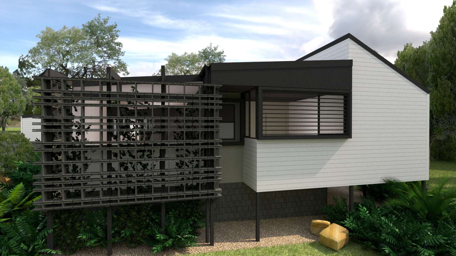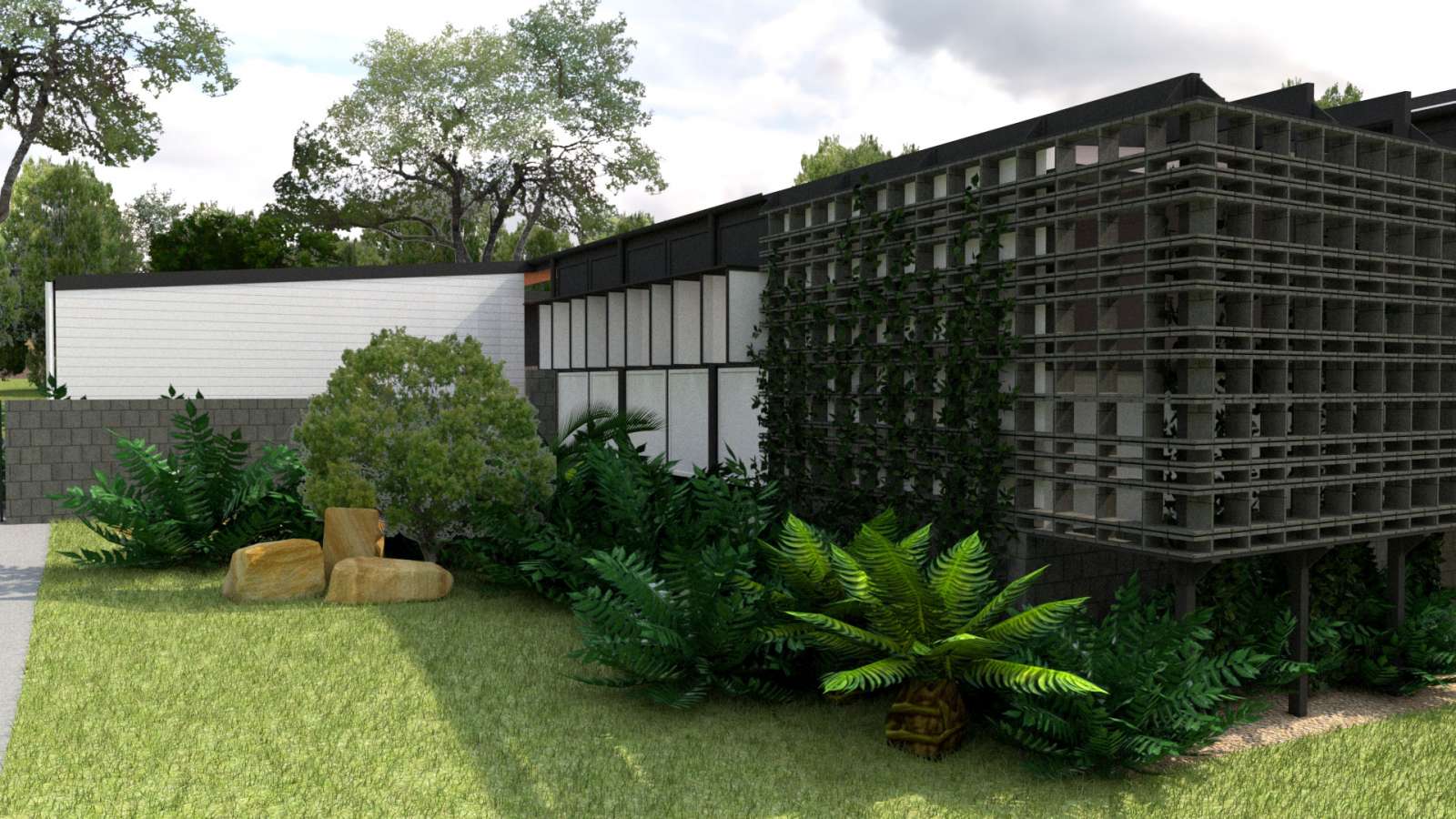 The first and most outer layer is made up of deep landscape planting. Over time it will mature and create a green habitat at the edges of the property. The outer limits have setbacks that are somewhat strange due to the developer setting a predetermined building envelope before land sale. Therefore, we have three sides that vary in depth, between 4.5m and 9m in scale. With these sizes available to us we can create pockets of varying density and colour to be enjoyed.