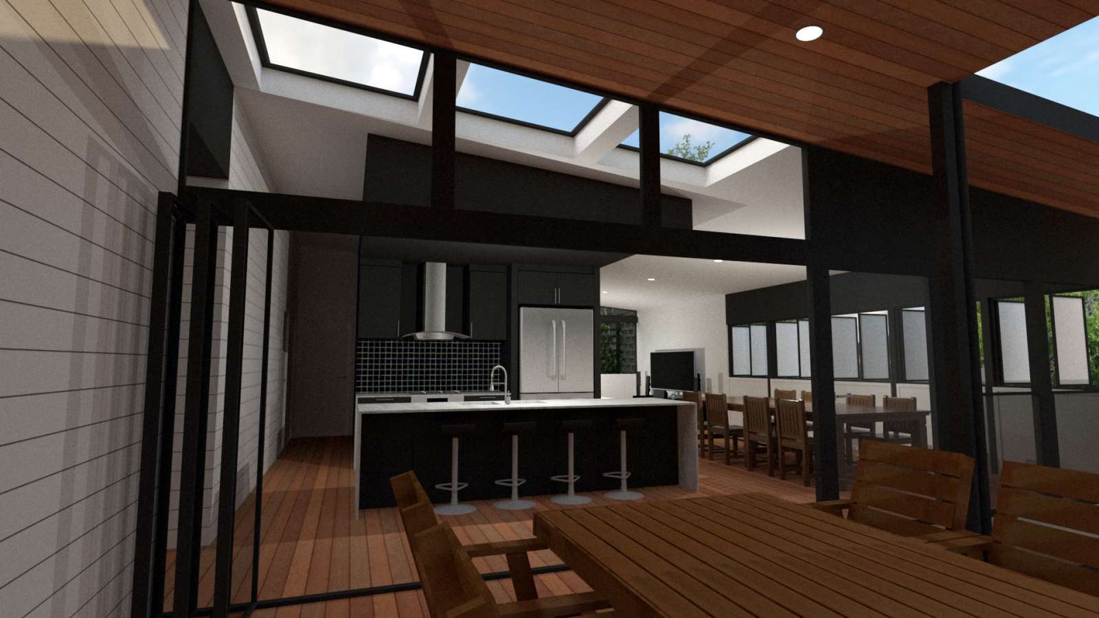 The final layer, as it relates to the three, is the inner court. This is a private space located at the heart of the floor plan. It is totally outside yet given discretion via surrounding built structure. Not only does it allow for a secure sanctuary, but from a solar passive perspective, it acts as a light well for the surrounding internal spaces.